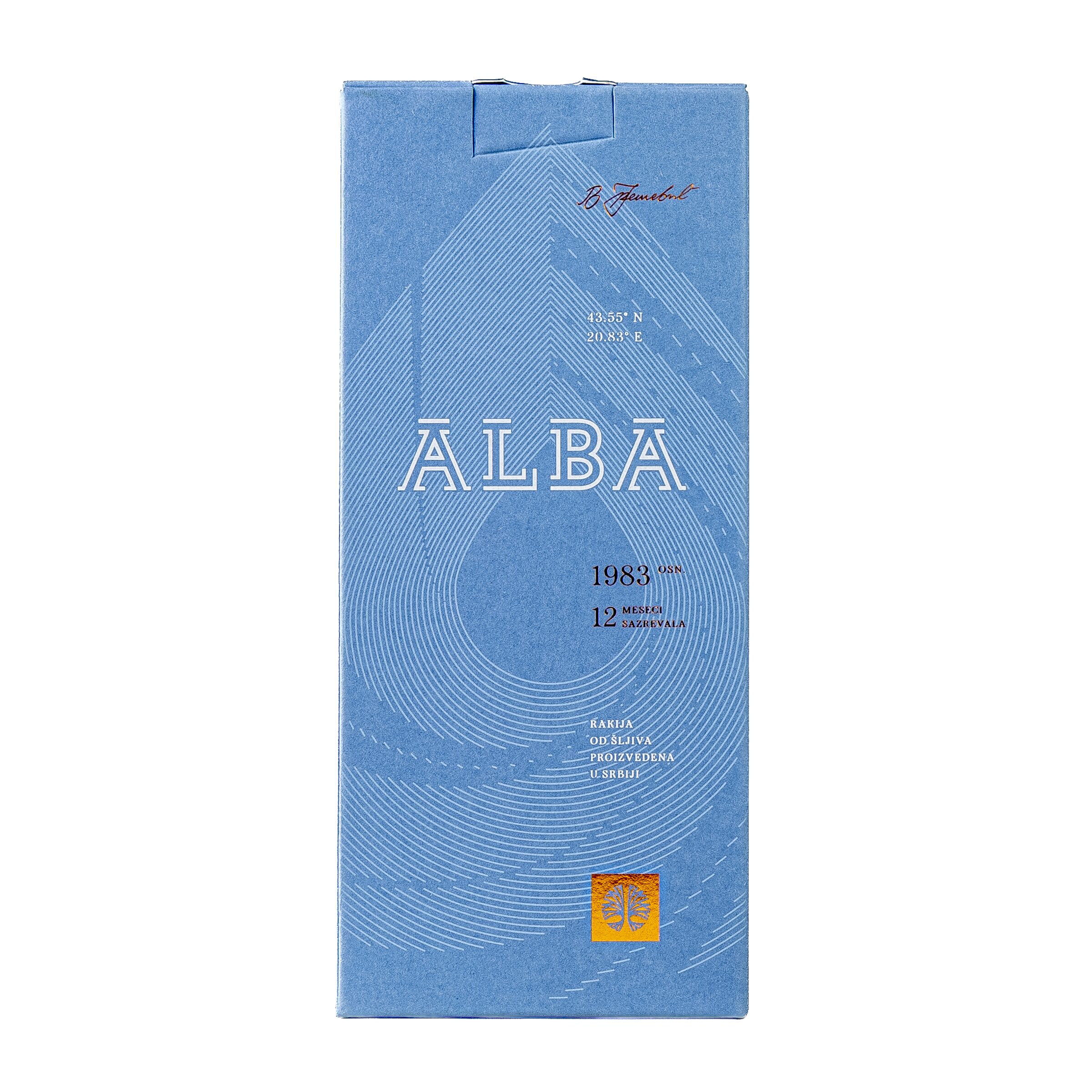 Alba 0,7l 43%vol Šljivova prepečenica sa kutijom Tok količina